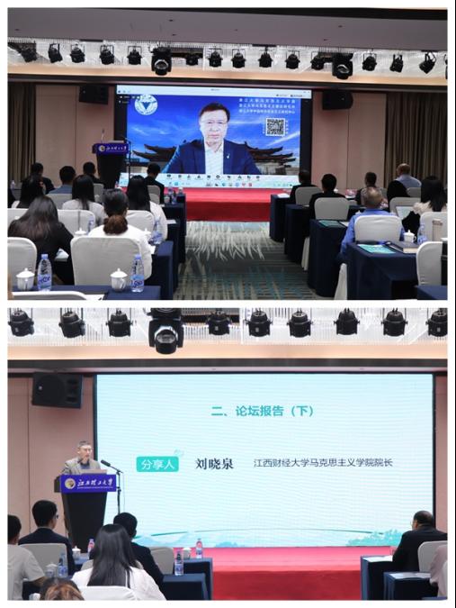 江西省委教育工委宣传部部长、省教育厅社政处处长魏建克,我校党委书记杨斌,中国人民大学马克思主义学院副院长宋友文出席开幕式并致辞,我校党委常委、副校长龚姚腾主持开幕式。