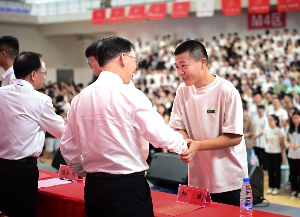 本网讯 9月17日上午,我校2023级研究生开学典礼在三江校区、南昌校区同步举行。在家校领导杨斌、温和瑞、罗仙平、龙立福、廖春发、唐云志、黄志繁,校党委常委肖卫东、盛晓明、刘志刚,各相关部门负责人、导师代表以及全体2023级研究生参加典礼。典礼由校党委常委、副校长黄志繁主持。