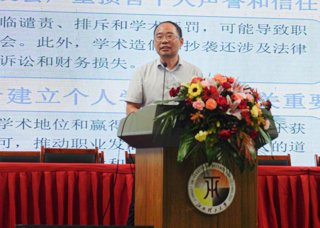 典礼之后,国家稀土功能材料创新中心(赣州)总经理、我校实验室与设备管理中心主任、江西省稀土荧光材料及器件重点实验室主任叶信宇教授为全体新生做了题为《科学研究与实验安全》的研究生入学教育专题讲座。