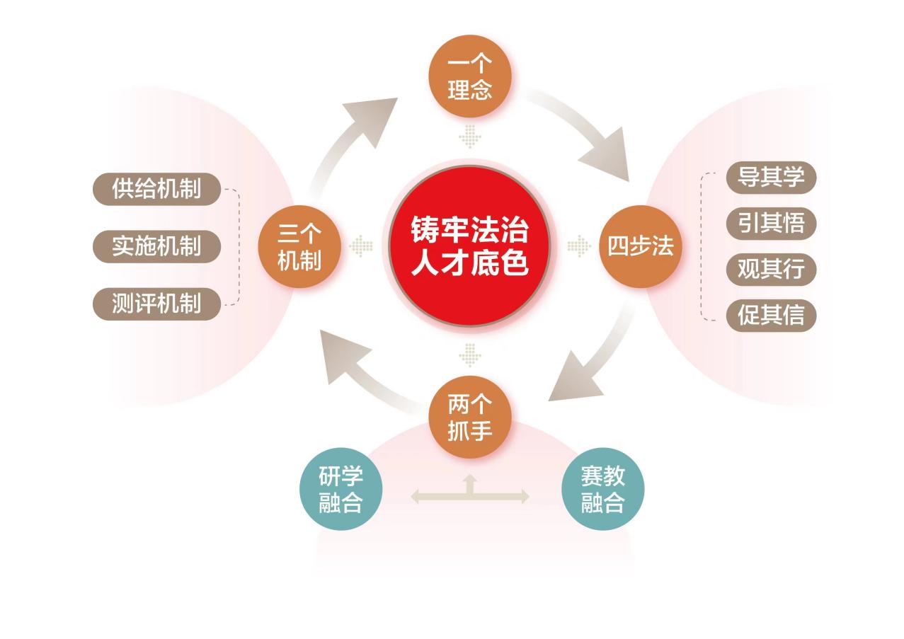 第一,坚持了一个理念。坚持把政治标准和政治要求贯穿于法科育人工作的始终,将学习党领导法治建设的百年光辉历程和历史经验纳入人才培养全过程,铸牢法科人才底色。