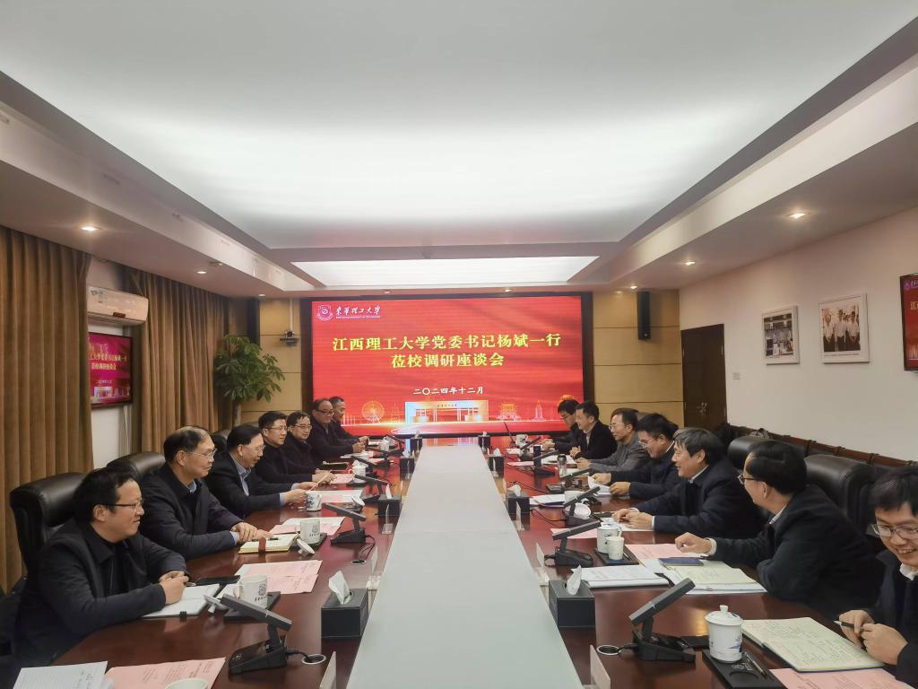 本网讯 12月26日下午,校党委书记杨斌带队前往东华理工大学调研交流。东华理工大学党委书记张福庆会见了杨斌一行,东华理工大学党委副书记、校长罗仙平主持座谈交流会。我校党委副书记徐志峰,党委常委、副校长廖春发、黄志繁,东华理工大学党委常委、副校长杨波及两校相关部门负责人参加座谈。