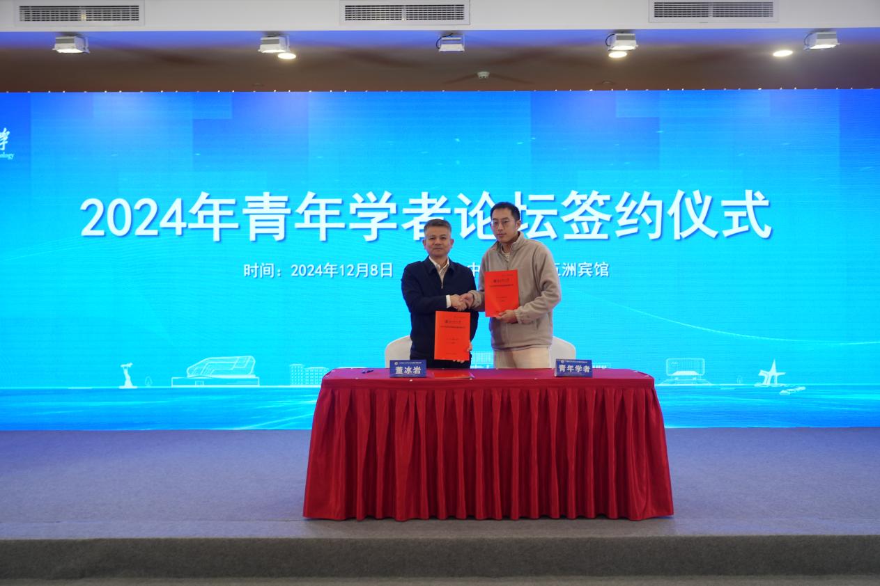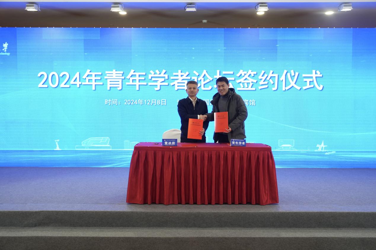 以此为契机,论坛还举行了隆重的人才签约仪式。5位青年学者与董冰岩共同上台,签署了人才合作协议,为学校的未来发展注入了新的活力。