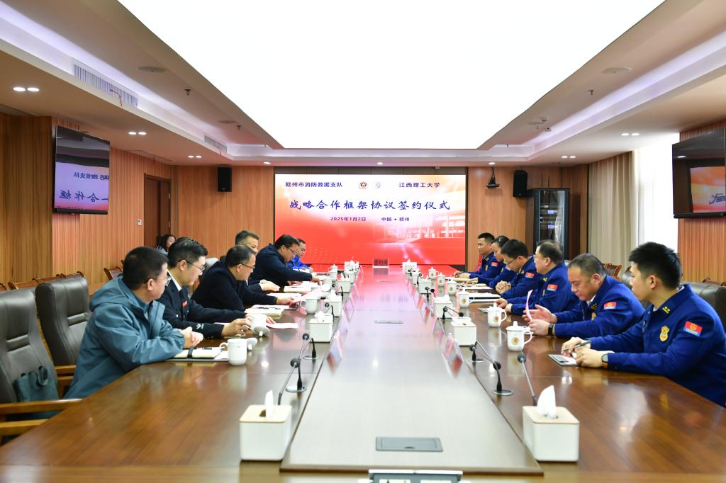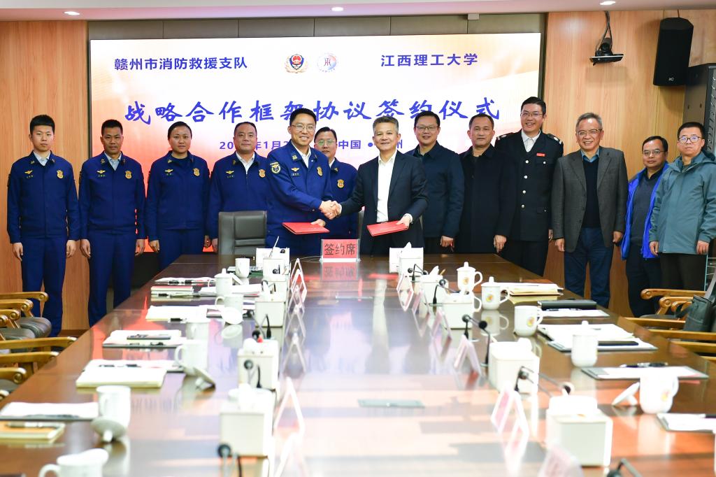 校国内合作促进中心、保卫处、校园服务与校产中心、应急管理与安全工程学院相关负责人以及赣州市消防救援支队火调技术科等相关人员参加签约活动。