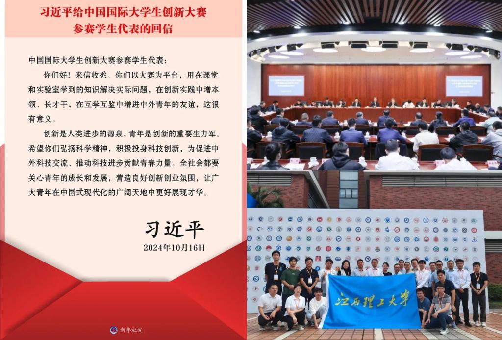 1.习近平总书记给我校稀土学院冶金工程专业博士研究生潘锡翔等25名中国国际大学生创新大赛参赛学生代表回信。回信引发师生热烈反响,并激励全体师生勇担使命、踔厉奋发,为科技创新事业贡献青春力量!
