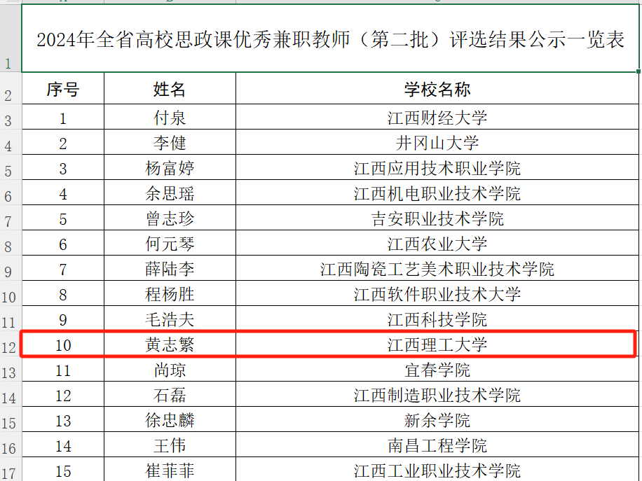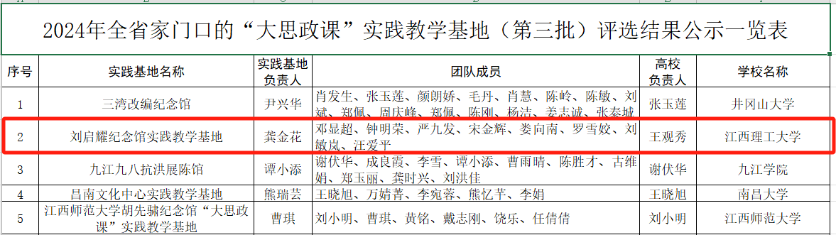 本网讯 近日,江西省教育厅公布了2024年全省“大思政课”建设综合改革试验区改革项目评选结果。我校喜获全省高校思政课优秀兼职教师、全省家门口的“大思政课”实践教学基地等八项成果。