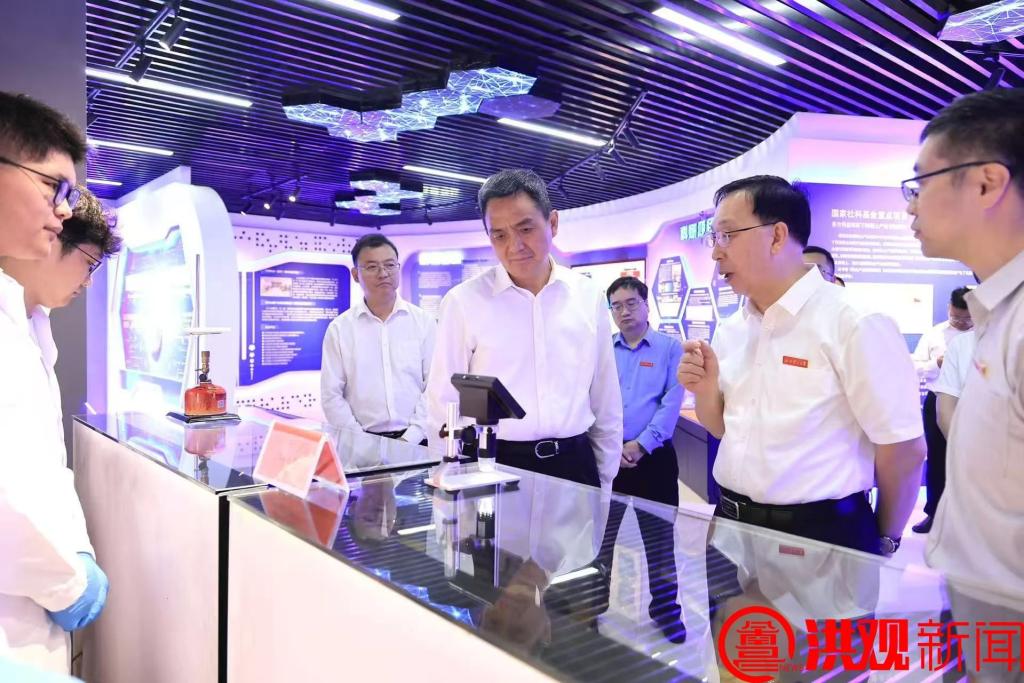 在江南(中国)南昌校区,李红军参观学校科技展厅、实验室等,与学校负责人深入交流,详细了解学校在专业人才培养、科研团队打造、科研成果转化等方面取得的成效。李红军对学校的办学成就给予充分肯定,对学校全力服务南昌产业发展表示感谢。他指出,当前,南昌正全面落实省会引领战略,深入推进“一枢纽四中心”建设,深化落实“8810”行动计划,坚持科技创新和产业创新深度融合,全力构建具有南昌特色的现代化产业体系,迫切需要驻昌高校人才和智力的支撑。希望江南(中国)南昌校区把自身发展与南昌发展结合起来,充分发挥人才荟萃、资源密集等优势,进一步加大与南昌的合作力度,共同把科技人才培养、关键技术攻关等工作做深做实,推动产业发展与高等教育良性互动、平台建设与人才培育相互成就,不断促进人才链、创新链、产业链深度融合,携手开创高质量发展新局面。