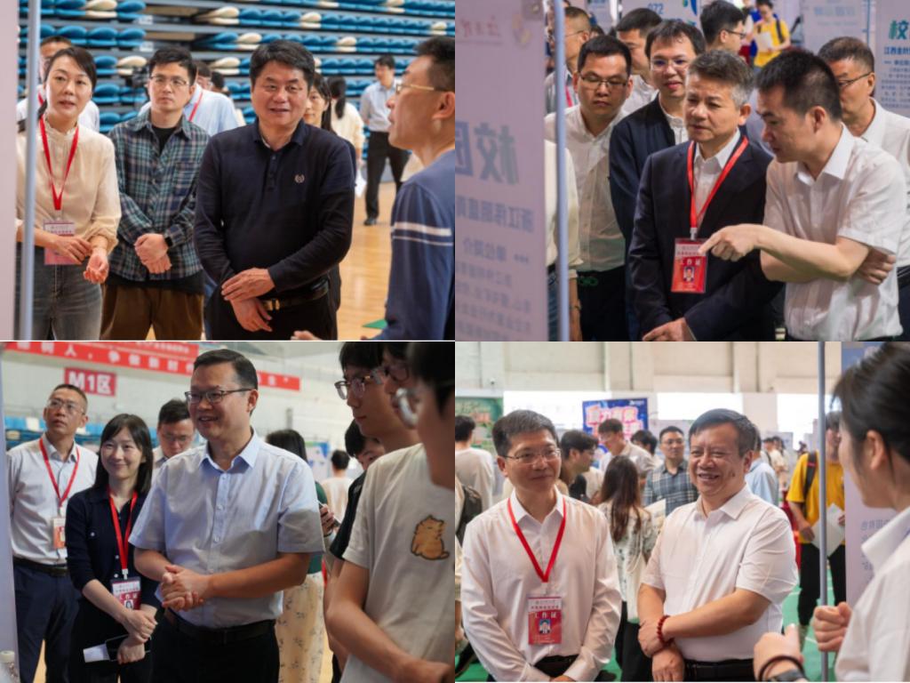 江西省教育评估监测研究院副院长唐旭,校党委常委、副校长董冰岩、熊志华,校党委常委、纪委书记、监察专员刘飞走访各企业展位,与企业代表深入交流,了解岗位需求及市场趋势,并听取用人单位对学校人才培养的反馈,推动人才培养与市场需求精准对接。