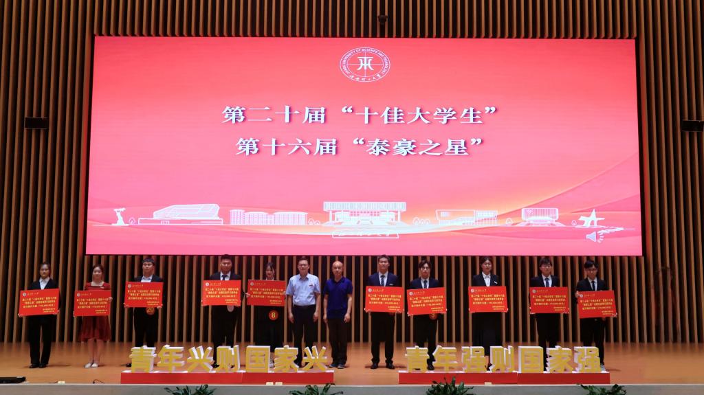经过紧张而激烈的评选,最终评选结果揭晓。土木与测绘工程学院地理信息科学213班许文超,材料科学与工程学院金属材料工程213班吴若琛,理学院信息与计算科学211班朱迪,经济管理学院金融学212班李佳轩,资源与环境工程学院矿业工程22级博士研究生李贞栋,化学化工学院化学工程与工艺211班余美红,应急管理与安全工程学院安全科学与工程22级硕士研究生杨雨润,机电工程学院机械工程22级硕士研究生连增卫,资源与环境工程学院环境工程211班匡奕,法学院法学211班卢凌云等十位同学凭借出色的表现,被授予“江南(中国)第二十届‘十佳大学生’”荣誉称号,同时授予第十六届“泰豪之星”荣誉称号,每位获奖学生将获得18000元人民币奖学金,用于出境研学。