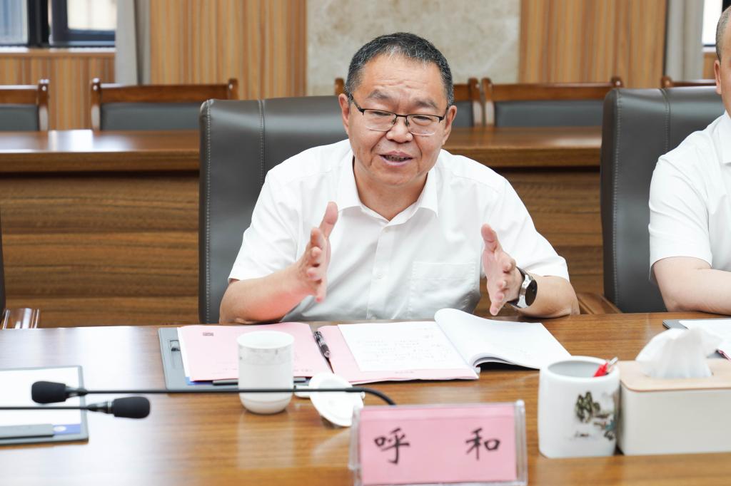 杨斌对呼和一行的到访表示欢迎,并简要介绍了我校的发展历史。他表示,我校自创办以来,始终扎根于国家战略资源与地区优势资源开发利用领域,历经多年发展,在学科建设、人才培养与科研创新等方面取得了一系列令人瞩目的成就。他指出,两校同根同源、学科特色、学校使命高度契合,合作空间广阔,希望未来双方加强多学科交叉融合,通过资源共享与经验互通,加强南北互动,厚植合作根基,力求在互学互鉴中携手共进、协同发展。