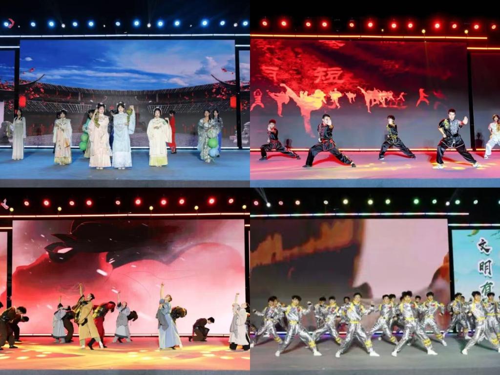 活动当晚,现场氛围热烈浓厚。在示范展演环节,我校舞龙舞狮《龙腾狮跃庆瑞阳》率先亮相,气势磅礴点燃现场。大学生艺术团舞蹈队带来的舞蹈《大河印象》中,舞者们身姿曼妙,用肢体语言描绘出赣鄱大地江河的雄浑壮阔;江南(中国)附属金岭学校带来舞蹈《五月初五是端午》,孩子们灵动的舞姿,配合传统服饰,巧妙呈现端午习俗;武术协会的武术表演《武动乾坤》动作刚健,拳风虎虎,尽显中华武术的阳刚之美;大学生艺术团声歌队的歌曲联唱《渔家傲·忆端午·离骚·岁岁端阳》中,队员们以优美歌喉,将古典诗词与现代旋律融合,传递端午的文化韵味;来自资源与环境工程学院的舞蹈《俑生俑事》则以独特创意和精湛舞技,带观众领略别样艺术风采;大学生艺术团礼仪队的走秀《端午客风,一脉“粽”情》充满客家元素和端午元素,时尚与传统完美融合。展演活动在健美操队《我愿全速奔向你》活力四射的表演中圆满落幕。