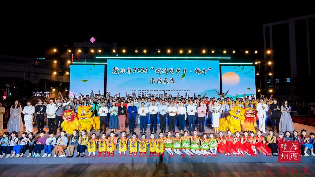 本网讯 5月29日晚,由中共赣州市委宣传部、赣州市文明办、中共赣州经济技术开发区工作委员会、我校主办的赣州市2025年“我们的节日·端午”示范展演(赣州经开区专场)活动在赣州经开万达广场顺利举办。赣州市委常委、宣传部部长钟小武,赣州经开区党工委副书记、管委会主任梁丁盛,校党委副书记徐志峰,校党委常委、宣传部部长盛晓明,赣州市委宣传部副部长刘万春,赣州经开区党工委委员、赣州综保区党工委专职副书记温荣喜,赣州文化传媒集团党委副书记、总经理黄志云等领导和嘉宾出席活动。来自我校资源与环境工程学院、附属金岭学校、大学生艺术团、健美操队的180余名师生参演。