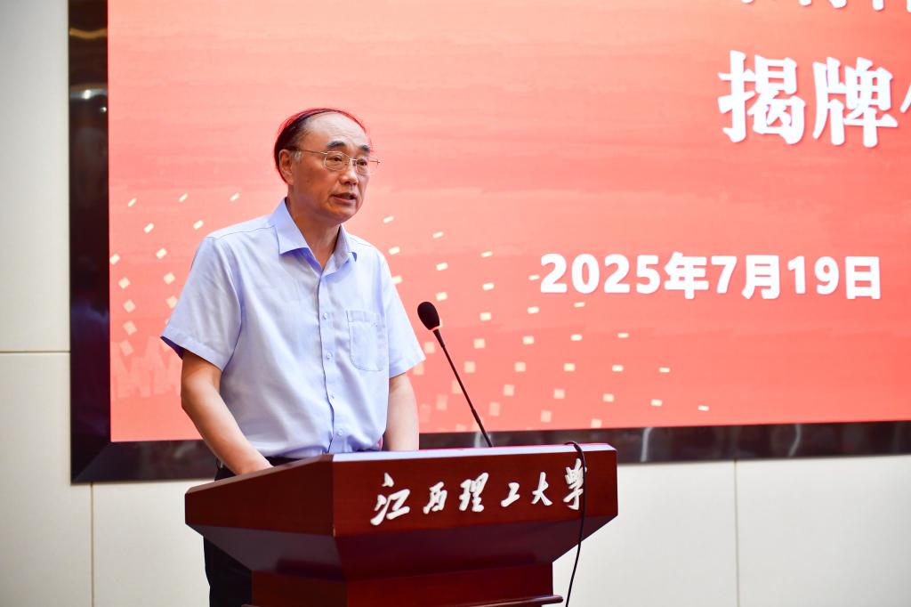 江西省教育厅二级巡视员雷杰华与我校党委书记、赣南实验室执行主任杨斌共同揭牌。中国科学院赣江创新研究院党委书记齐涛、江西铜业股份有限公司副总经理涂东阳、江西钨业控股集团有限公司副总经理郭永忠、中国瑞林工程技术股份有限公司副总经理刘奕、中国稀土集团科技创新与信息化部副总经理黄玮泽、南昌大学副校长王立、南昌航空大学副校长邹建平、景德镇陶瓷大学副校长陈云霞等共建单位代表,省教育厅高等教育处副处长朱其昌,中国工程院院士、我校校长葛世荣,党委常委、副校长董冰岩以及相关学院与部门主要负责人参加揭牌仪式。董冰岩主持仪式。